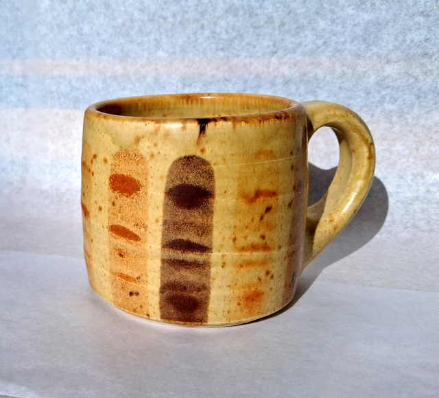 Stoneware, striped, oatmeal glazed mug.